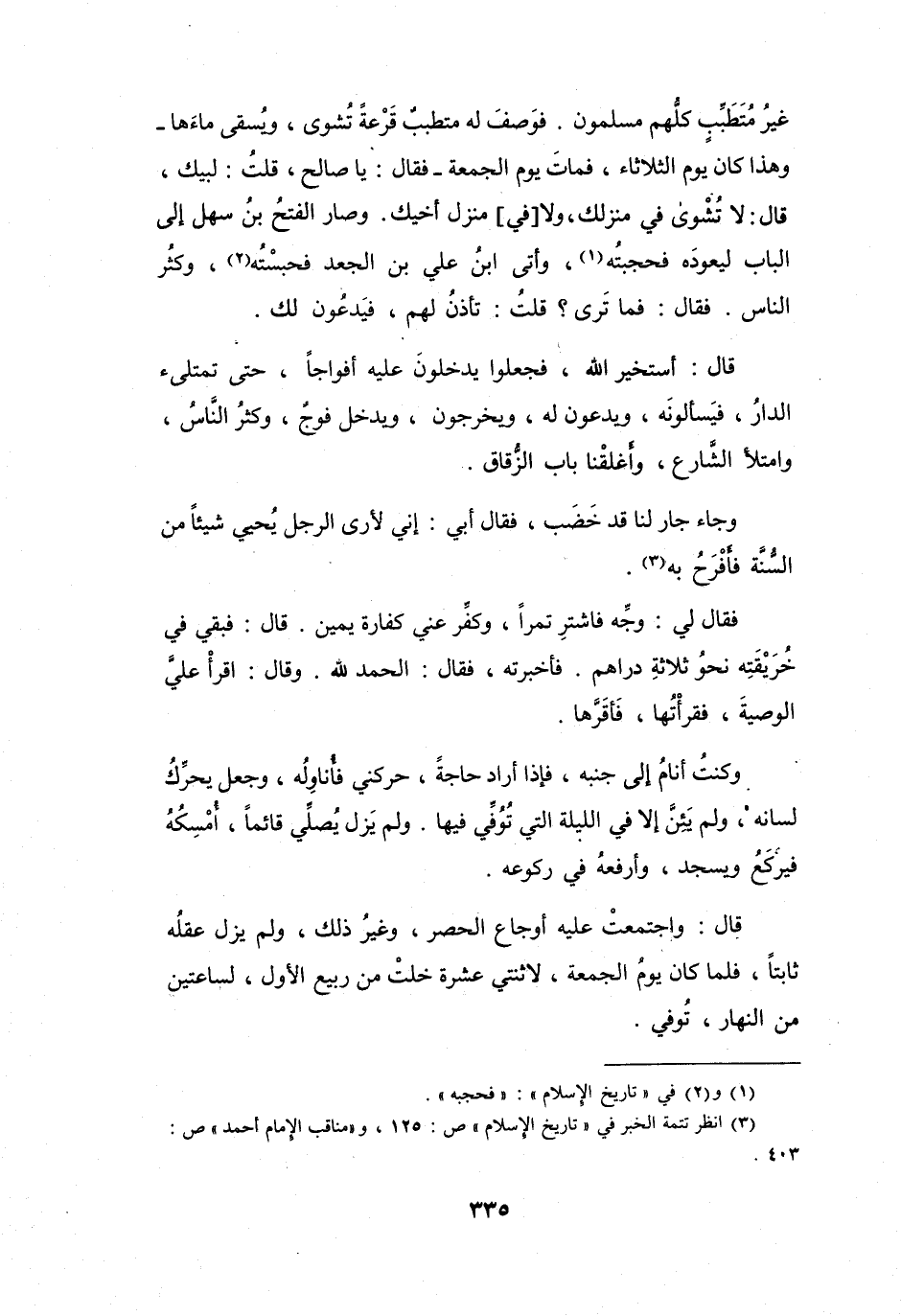 (3) انظر تتمة الخبر في " تاريخ الإسلام " ص: 125، و" مناقب الامام أحمد " ص: 403.