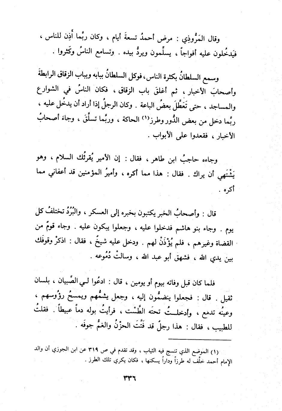 (1) الموضع الذي تنسج فيه الثياب، وقد تقدم في ص 319 عن ابن الجوزي أن والد الامام أحمد خلف له طرزا ودارا يسكنها، فكان يكري تلك الطرز.