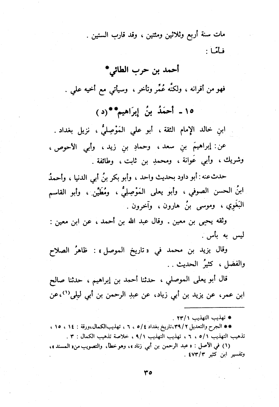 - فَأَمَّا: أَحْمَدُ بنُ حَرْبٍ الطَّائِيُّ *