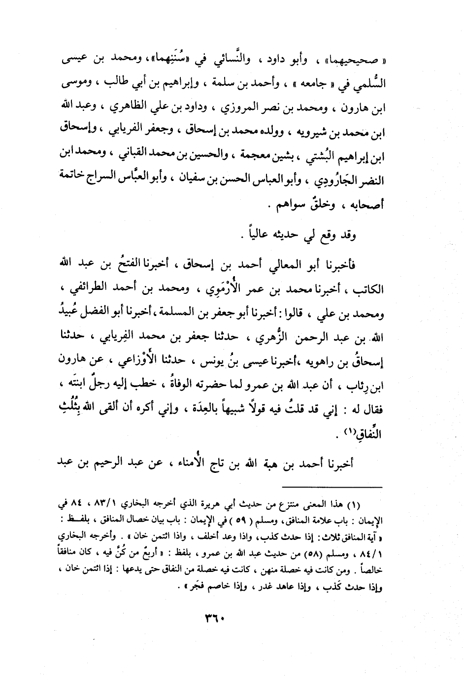 (1) هذا المعنى منتزع من حديث أبي هريرة الذي أخرجه البخاري 1 / 83، 84 في الايمان: باب علامة المنافق، ومسلم (59) في الايمان: باب بيان خصال المنافق، بلفظ: " آية المنافق ثلاث: إذا حدث كذب، وإذا وعد أخلف، وإذا ائتمن خان ".