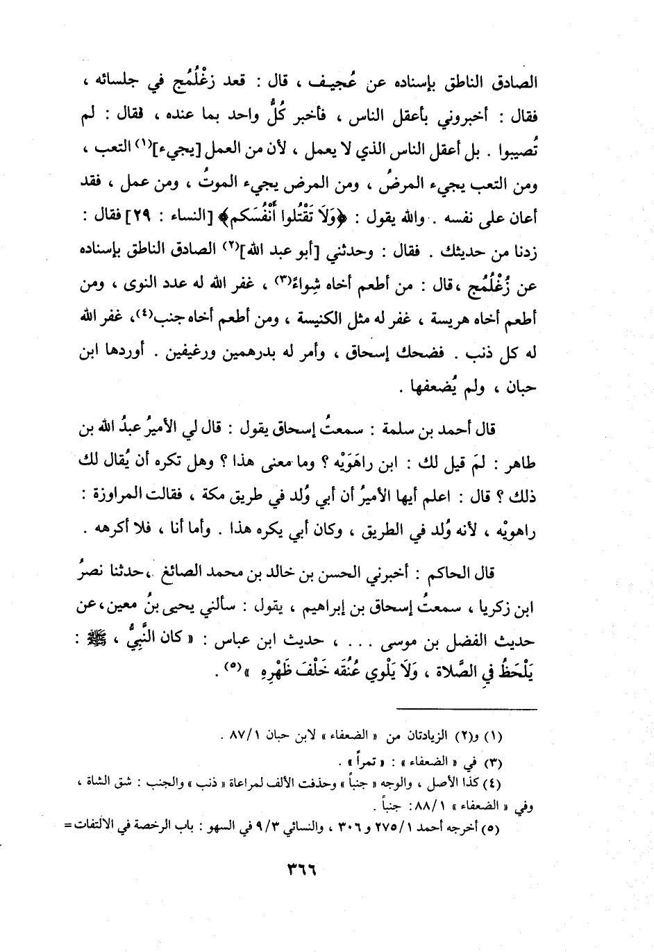 سَأَلَنِي يَحْيَى بنُ مَعِيْنٍ، عَنْ حَدِيْثِ الفَضْلِ بنِ مُوْسَى ... ، حَدِيْثِ ابْنِ عَبَّاسٍ: