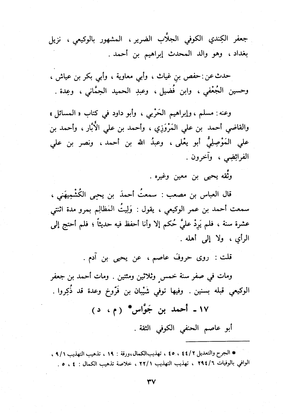 جَعْفَرٍ الكِنْدِيُّ، الكُوْفِيُّ، الجَلاَّبُ، الضَّرِيْرُ، المَشْهُوْرُ: بِالوَكِيْعِيِّ، نَزِيْلُ بَغْدَادَ، وَهُوَ وَالِدُ المُحَدِّثِ إِبْرَاهِيْمَ بنِ أَحْمَدَ.