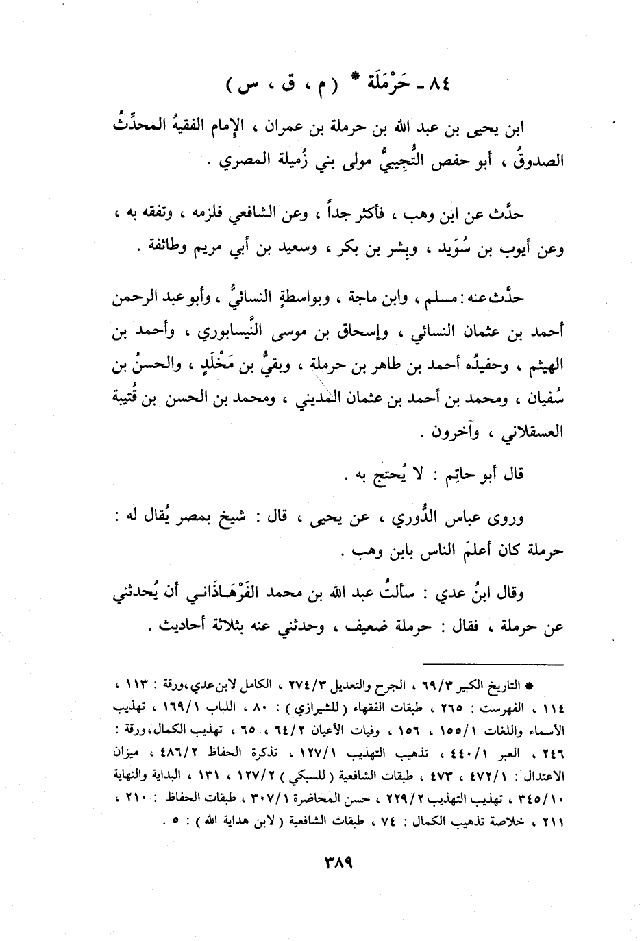 84 - حَرْمَلَةُ بنُ يَحْيَى بنِ عَبْدِ اللهِ بنِ حَرْمَلَةَ بنِ عِمْرَانَ * (م، ق، س)