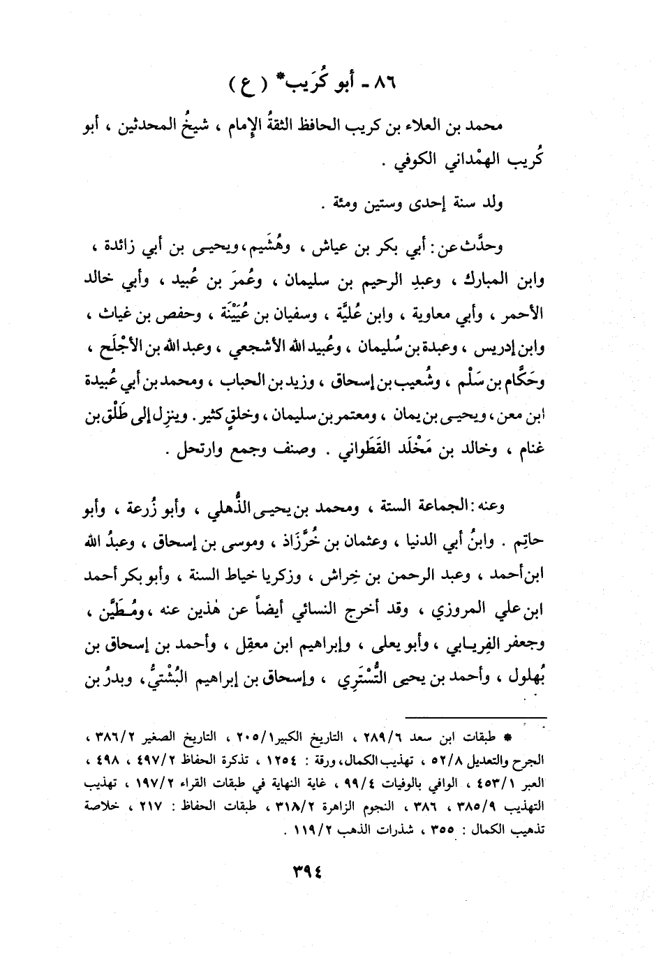 86 - أَبُو كُرَيْبٍ مُحَمَّدُ بنُ العَلاَءِ بنِ كُرَيْبٍ الهَمْدَانِيُّ * (ع)