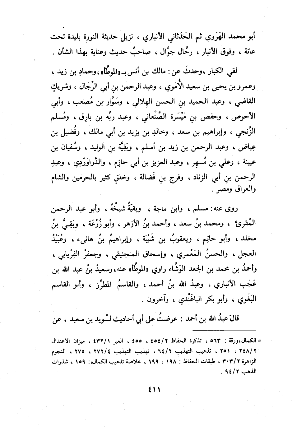 أَبُو مُحَمَّدٍ الهَرَوِيُّ، ثُمَّ الحَدَثَانِيُّ، الأَنْبَارِيُّ، نَزِيْلُ حَدِيْثَةِ النَّوْرَةِ، بُلَيْدَةٌ تَحْتَ عَانَةَ، وَفَوْقَ الأَنْبَارِ، رَحَّالٌ، جَوَّالٌ، صَاحِبُ حَدِيْثٍ وَعِنَايَةٍ بِهَذَا الشَّأْنِ.