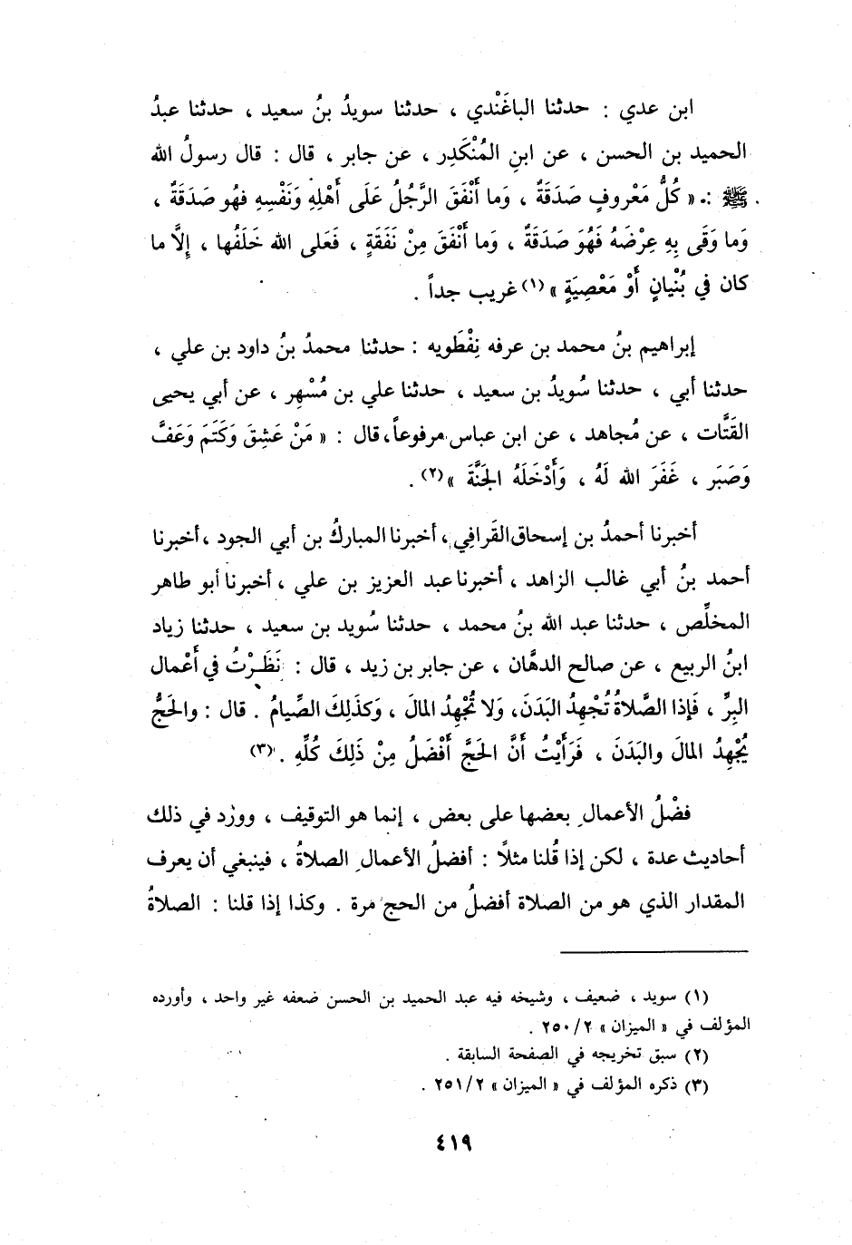 ابْنُ عَدِيٍّ: حَدَّثَنَا البَاغَنْدِيُّ، حَدَّثَنَا سُوَيْدُ بنُ سَعِيْدٍ، حَدَّثَنَا عَبْدُ الحَمِيْدِ بنُ الحَسَنِ، عَنِ ابْنِ المُنْكَدِرِ، عَنْ جَابِرٍ، قَالَ: