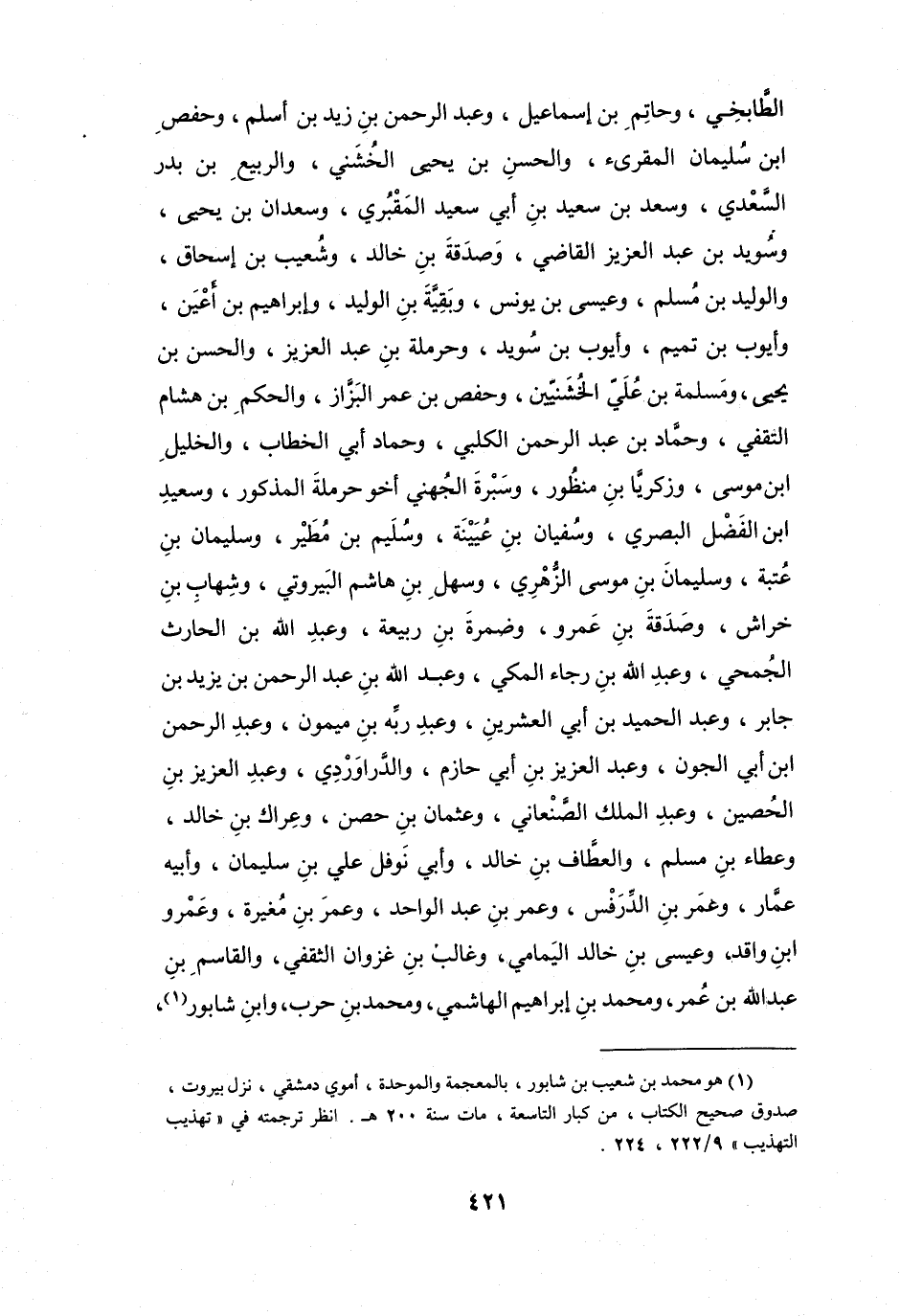 (1) هو محمد بن شعيب بن شابور، بالمعجمة والموحدة، أموي دمشقي، نزل بيروت، صدوق صحيح الكتاب، من كبار التاسعة، مات سنة 200 هـ. انظر ترجمته في " تهذيب التهذيب " 9 / 222، 224.