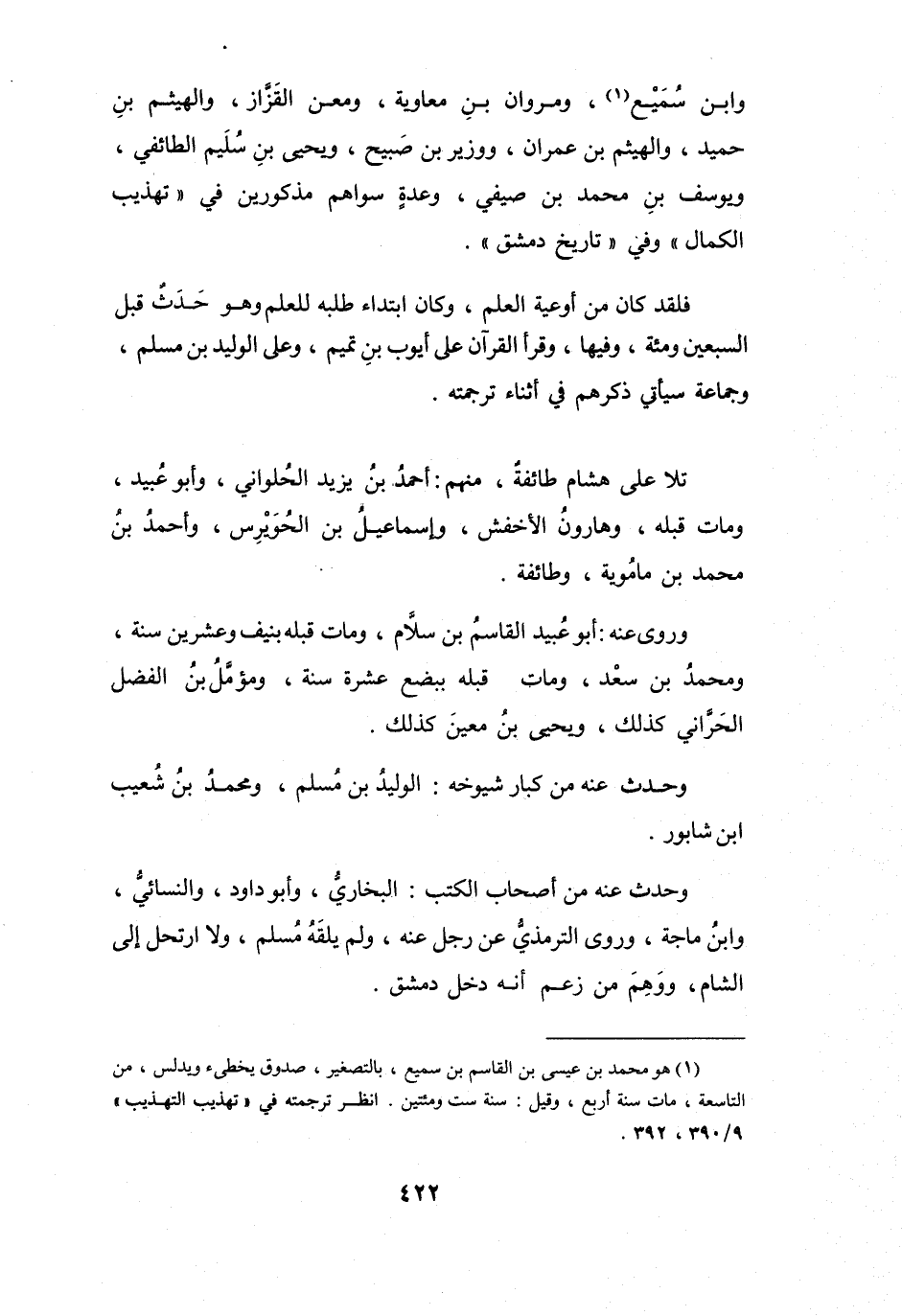 (1) هو محمد بن عيسى بن القاسم بن سميع، بالتصغير، صدوق يخطئ ويدلس، من التاسعة، مات سنة أربع، وقيل: سنة ست ومئتين. انظر ترجمته في " تهذيب التهذيب " 9 / 390، 392.