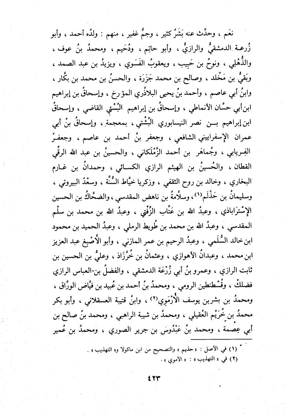 ثَابِتٍ الرَّازِيُّ، وَعَمْرُو بنُ أَبِي زُرْعَةَ الدِّمَشْقِيُّ، وَالفَضْلُ بنُ العَبَّاسِ الرَّازِيُّ فَضْلَكْ، وَقُسْطَنْطِيْنُ الرُّوْمِيُّ، وَمُحَمَّدُ بنُ أَحْمَدَ بنِ عُبَيْدِ بنِ فَيَّاضٍ الوَرَّاقُ، وَمُحَمَّدُ بنُ بِشْرِ بنِ يُوْسُفَ الأُرْمَوِيُّ (2) ، وَابْن قُتَيْبَةَ العَسْقَلاَنِيُّ، وَأَبُو بَكْرٍ مُحَمَّدُ بنُ خُرَيْمٍ العُقَيْلِيُّ، وَمُحَمَّدُ بنُ شَيْبَةَ الرَّاهبِيُّ، وَمُحَمَّدُ بنُ صَالِحِ بنِ أَبِي عِصْمَةَ، وَمُحَمَّدُ بنُ عَبْدُوْسِ بنِ جَرِيْرٍ الصُّوْرِيُّ، وَمُحَمَّدُ بنُ عُمَيْرٍ