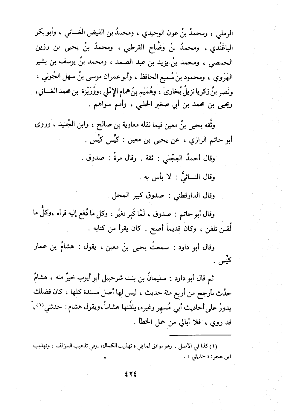 وَقَالَ أَبُو دَاوُدَ: سَمِعْتُ يَحْيَى بنَ مَعِيْنٍ يَقُوْلُ: هِشَامُ بنُ عَمَّارٍ كَيِّسٌ.