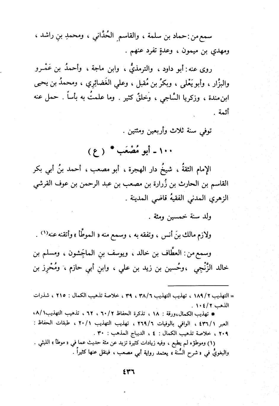 (1) وموطؤه لم يطبع، وفيه زيادات كثيرة تزيد عن مئة حديث عما في " موطأ " الليثي. والبغوي في " شرح السنة " يعتمد رواية أبي مصعب، فينقل عنها كثيرا.