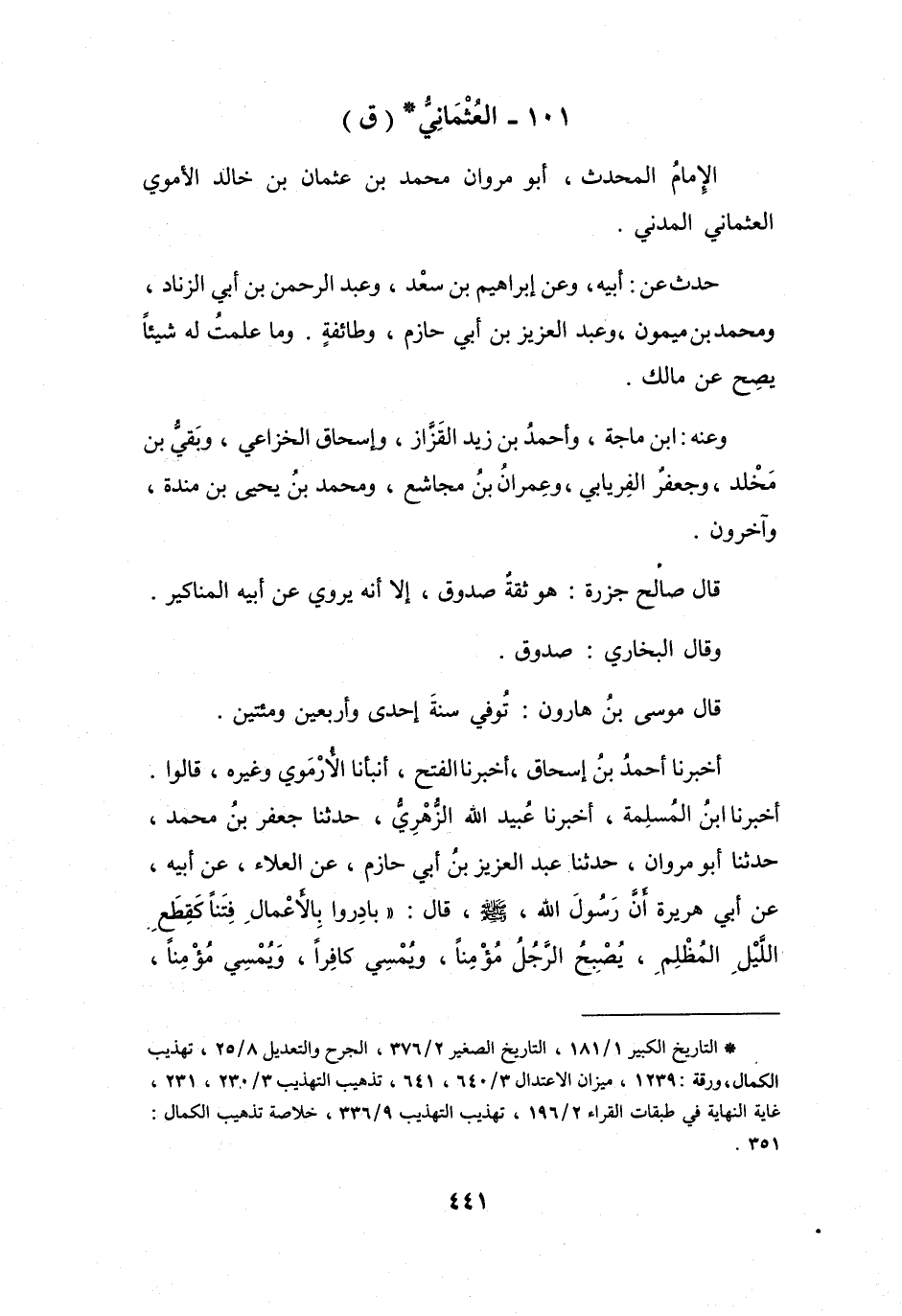 101 - العُثْمَانِيُّ أَبُو مَرْوَانَ مُحَمَّدُ بنُ عُثْمَانَ بنِ خَالِدٍ * (ق)