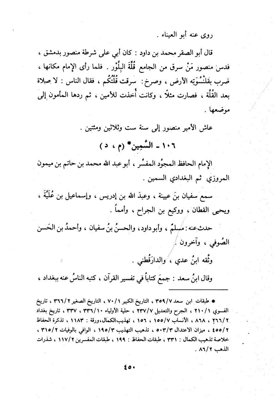 106 - السَّمِيْنُ أَبُو عَبْدِ اللهِ بنُ حَاتِمِ بنِ مَيْمُوْنٍ المَرْوَزِيُّ * (م، د)