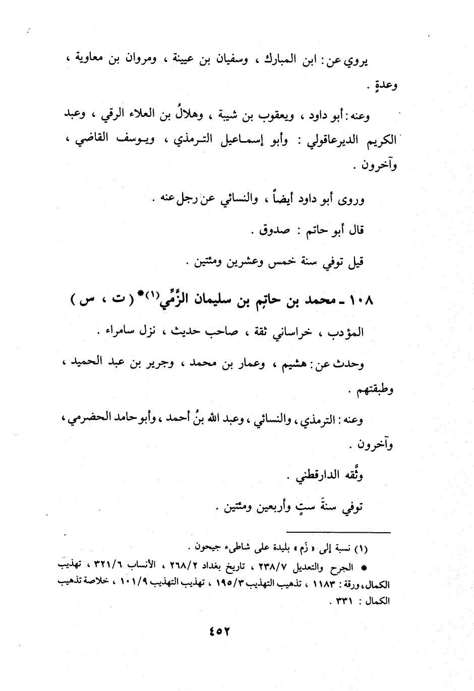 108 - مُحَمَّدُ بنُ حَاتِمِ بنِ سُلَيْمَانَ الزَّمِّيُّ (1) * (ت، س)