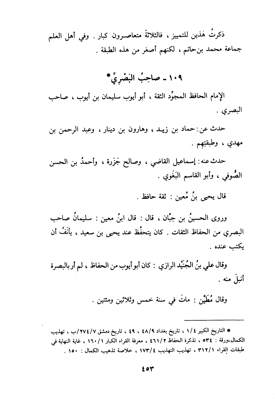 109 - صَاحِبُ البَصْرِيِّ أَبُو أَيُّوْبَ سُلَيْمَانُ بنُ أَيُّوْبَ *