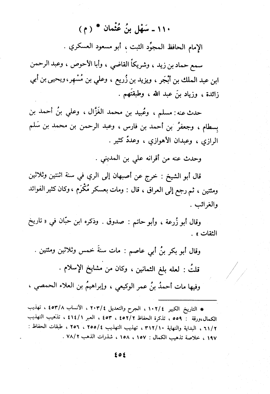 110 - سَهْلُ بنُ عُثْمَانَ أَبُو مَسْعُوْدٍ العَسْكَرِيُّ * (م)
