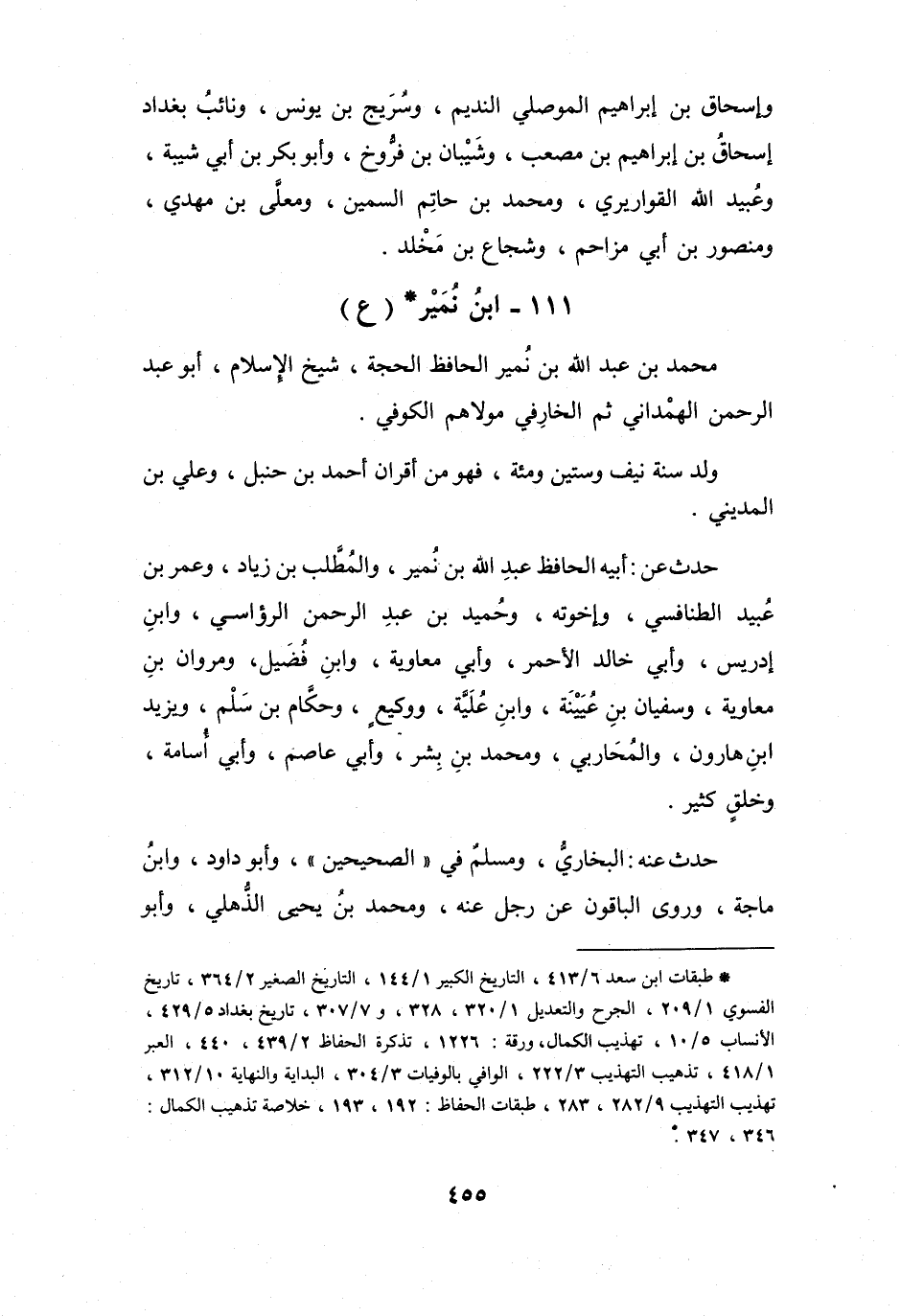 111 - ابْنُ نُمَيْرٍ مُحَمَّدُ بنُ عَبْدِ اللهِ بنِ نُمَيْرٍ الهَمْدَانِيُّ * (ع)