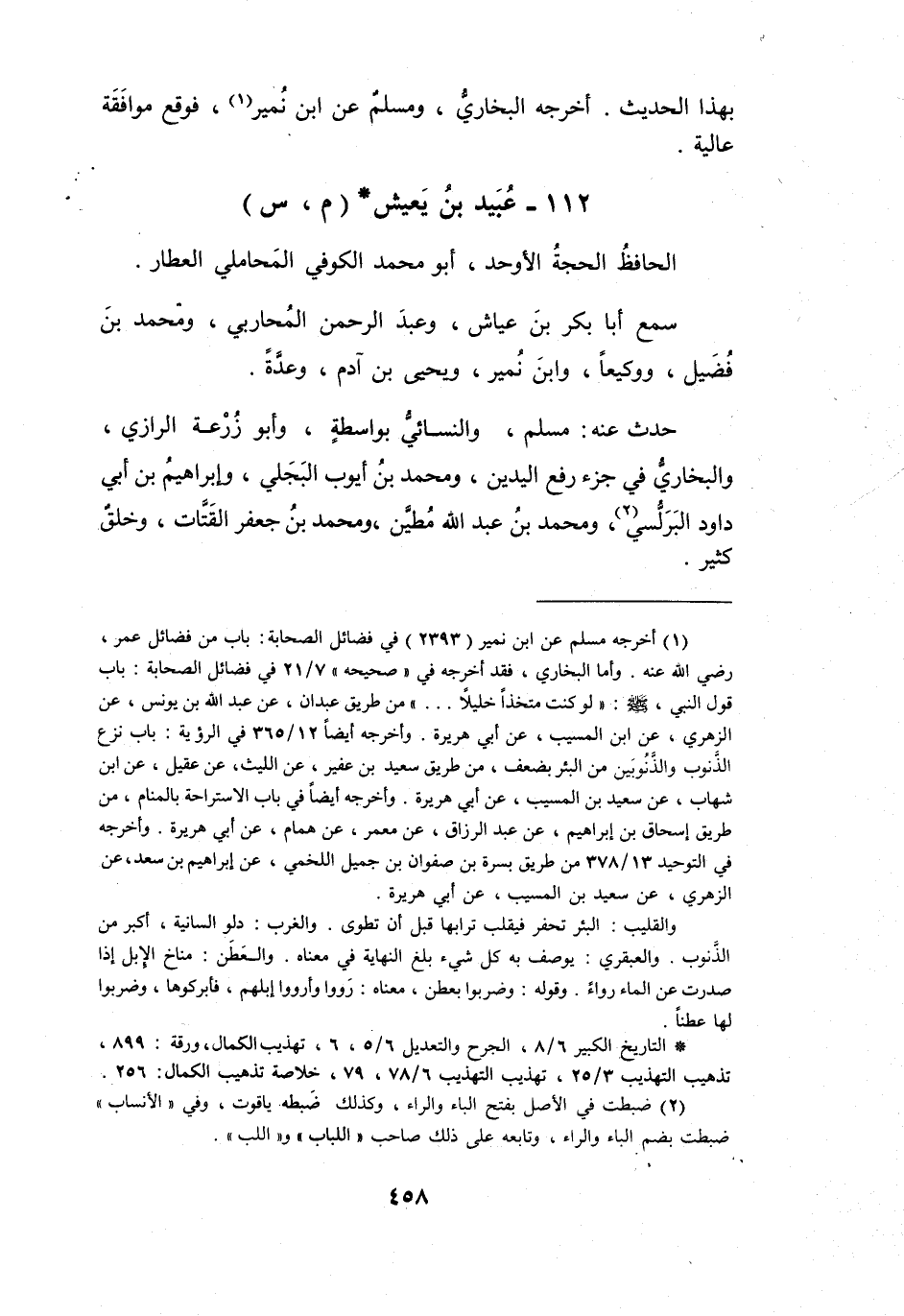112 - عُبَيْدُ بنُ يَعِيْشَ أَبُو مُحَمَّدٍ الكُوْفِيُّ المَحَامِلِيُّ * (م، س)