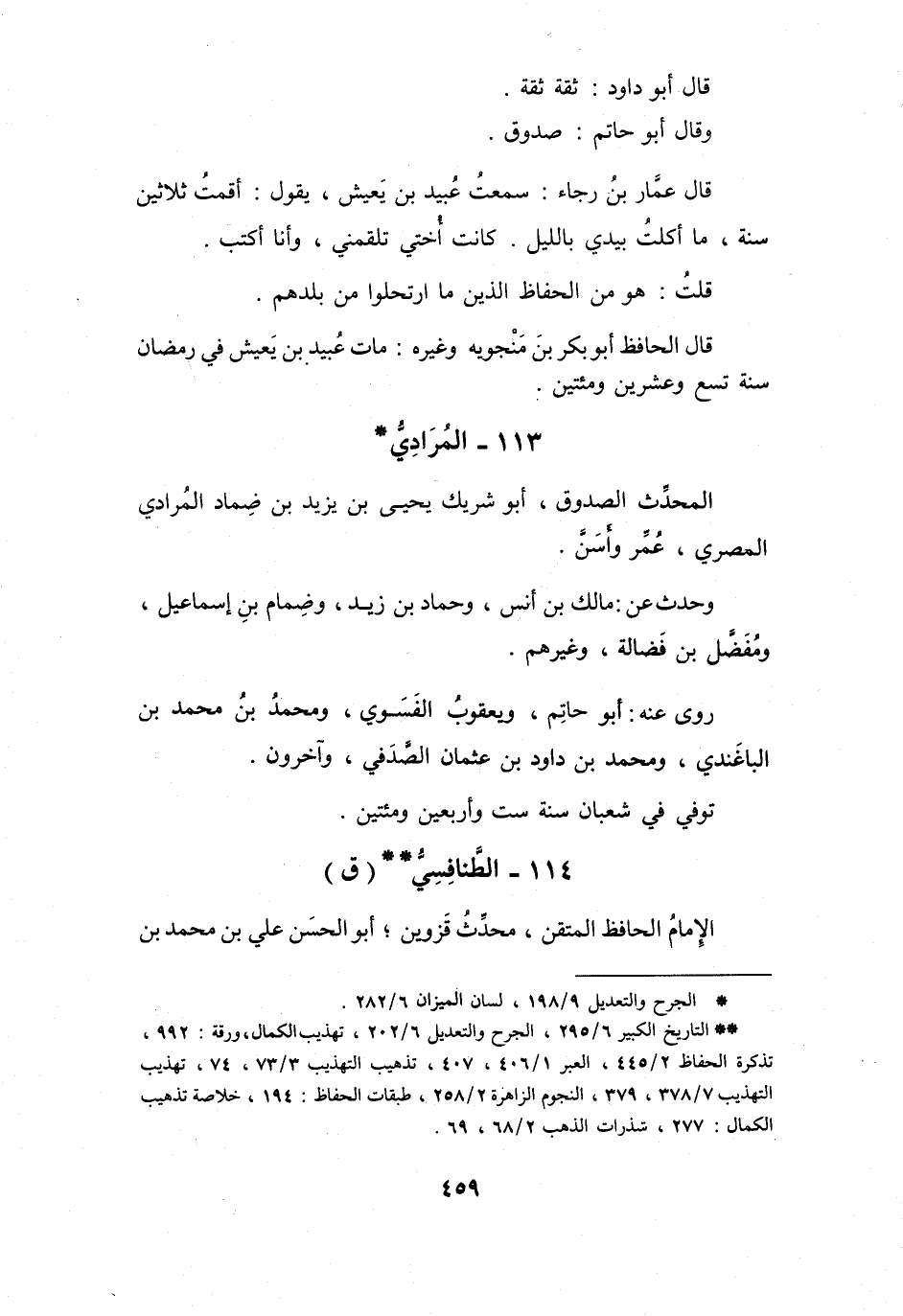 114 - الطَّنَافِسِيُّ أَبُو الحَسَنِ عَلِيُّ بنُ مُحَمَّدِ بنِ إِسْحَاقَ ** (ق)