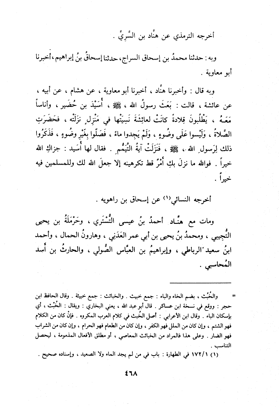 وَبِهِ، قَالَ: وَأَخْبَرَنَا هَنَّادٌ، أَخْبَرَنَا أَبُو مُعَاوِيَةَ، عَنْ هِشَامٍ، عَنْ أَبِيْهِ، عَنْ عَائِشَةَ، قَالَتْ: