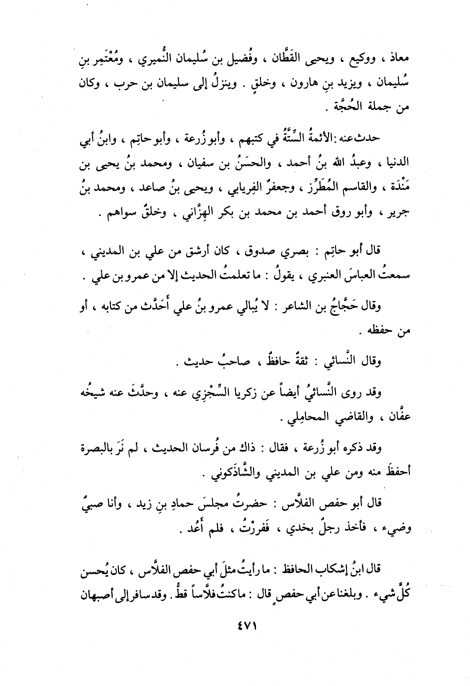 وَبَلَغَنَا عَنْ أَبِي حَفْصٍ، قَالَ: مَا كُنْتُ فَلاَّساً قَطُّ. وَقَدْ سَافَرَ إِلَى أَصْبَهَانَ