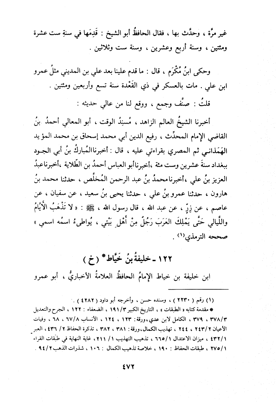 122 - خَلِيْفَةُ بنُ خَيَّاطِ بنِ خَلِيْفَةَ بنِ خَيَّاطٍ العُصْفُرِيُّ * (خَ)