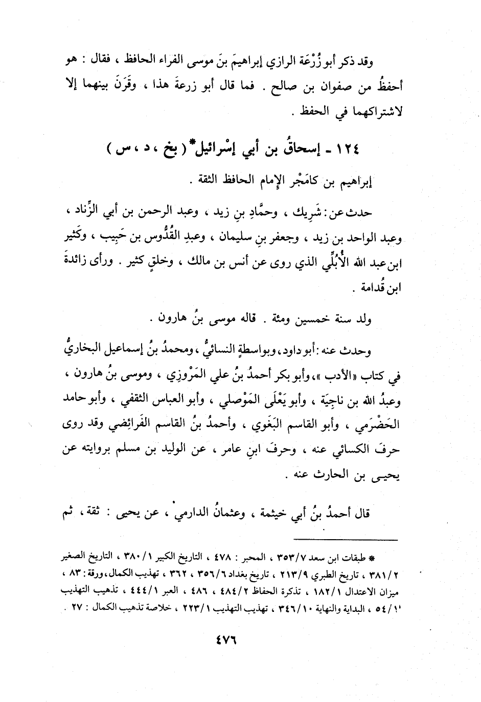 124 - إِسْحَاقُ بنُ أَبِي إِسْرَائِيْلَ إِبْرَاهِيْمَ بنِ كَامَجْرَ * (بَخ، د، س)