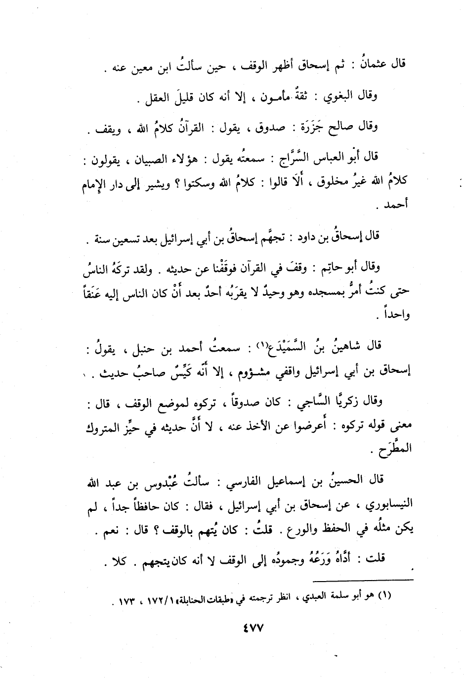 إِسْحَاقُ بنُ أَبِي إِسْرَائِيْلَ وَاقِفِيٌّ مَشْؤُوْمٌ، إِلاَّ أَنَّهُ كَيِّسٌ، صَاحِبُ حَدِيْثٍ.