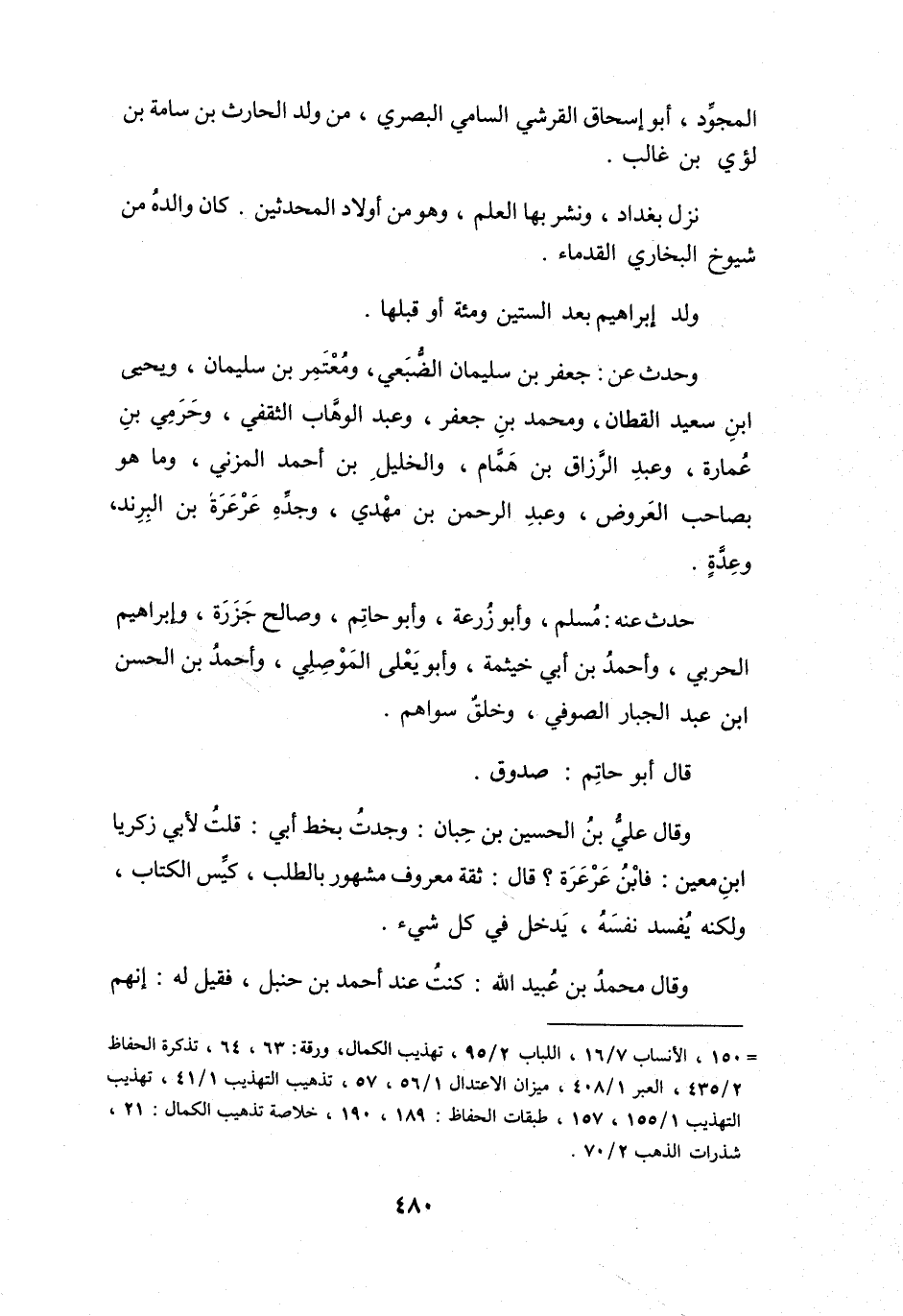 = 150، الأنساب 7 / 16، اللباب 2 / 95، تهذيب الكمال، ورقة: 63، 64، تذكرة الحفاظ 2 / 435، العبر 1 / 408، ميزان الاعتدال 1 / 56، 57، تذهيب التهذيب 1 / 41، تهذيب التهذيب 1 / 155، 157، طبقات الحفاظ: 189، 190، خلاصة تذهيب الكمال: 21، شذرات الذهب 2 / 70.