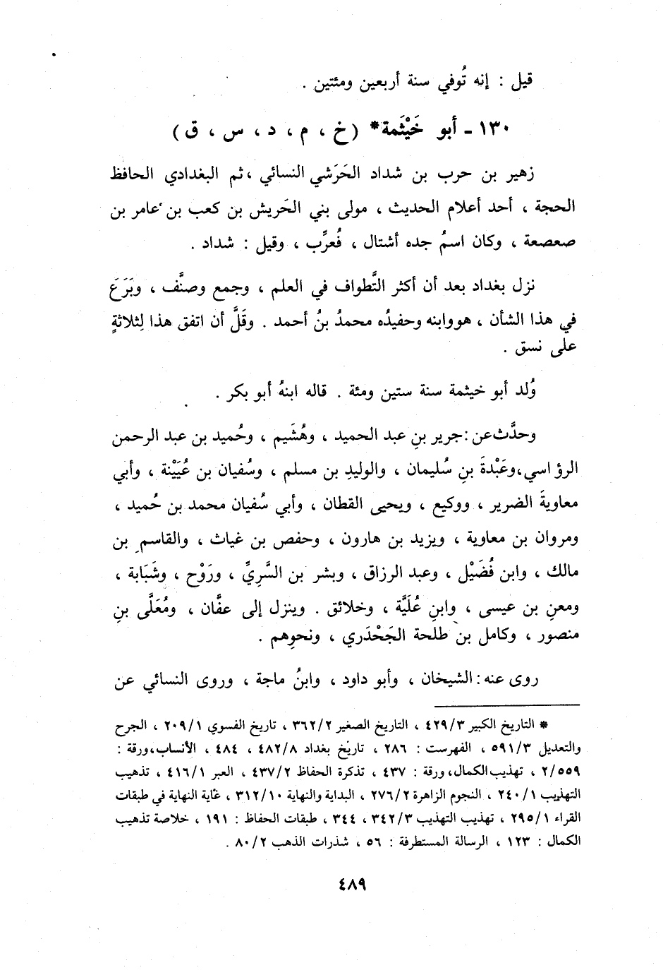 130 - أَبُو خَيْثَمَةَ زُهَيْرُ بنُ حَرْبِ بنِ شَدَّادٍ الحَرَشِيُّ * (خَ، م، د، س، ق)