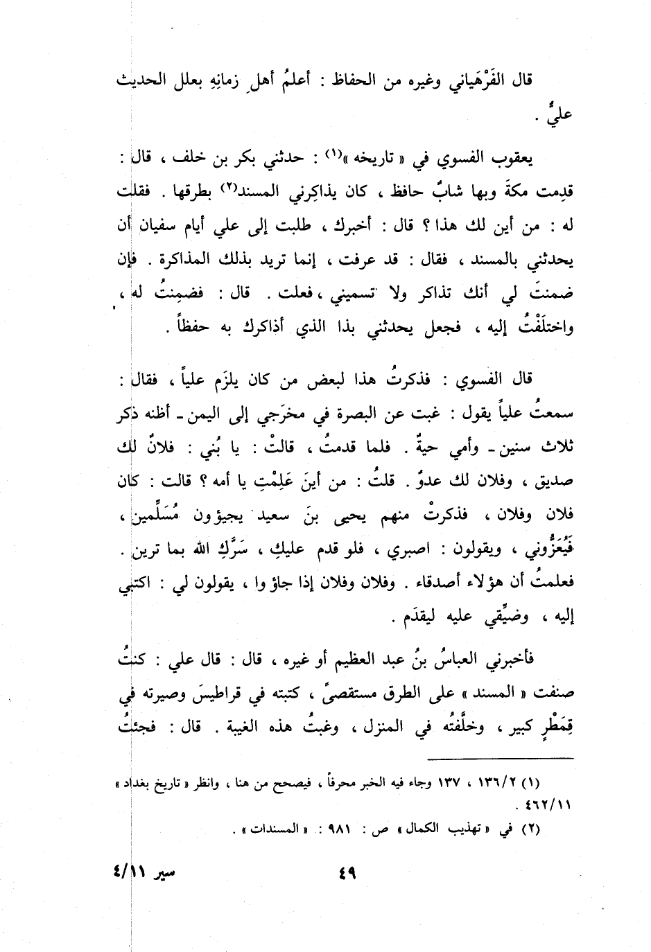 يَعْقُوْبُ الفَسَوِيُّ فِي (تَارِيْخِهِ (1)) : حَدَّثَنِي بَكْرُ بنُ خَلَفٍ، قَالَ: