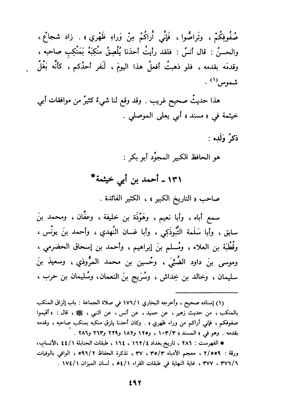 131 - أَبُو بَكْرٍ أَحْمَدُ بنُ أَبِي خَيْثَمَةَ *
