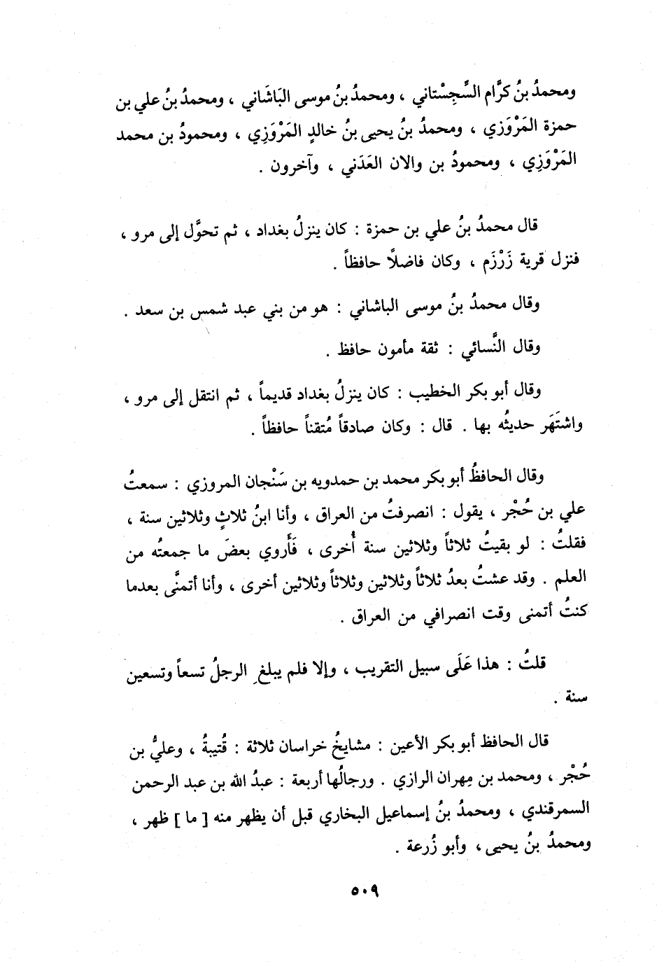وَقَالَ الحَافِظُ أَبُو بَكْرٍ مُحَمَّدُ بنُ حَمْدُوَيْه بنِ سَنْجَانَ المَرْوَزِيُّ: سَمِعْتُ عَلِيَّ بنَ حُجْرٍ يَقُوْلُ:
