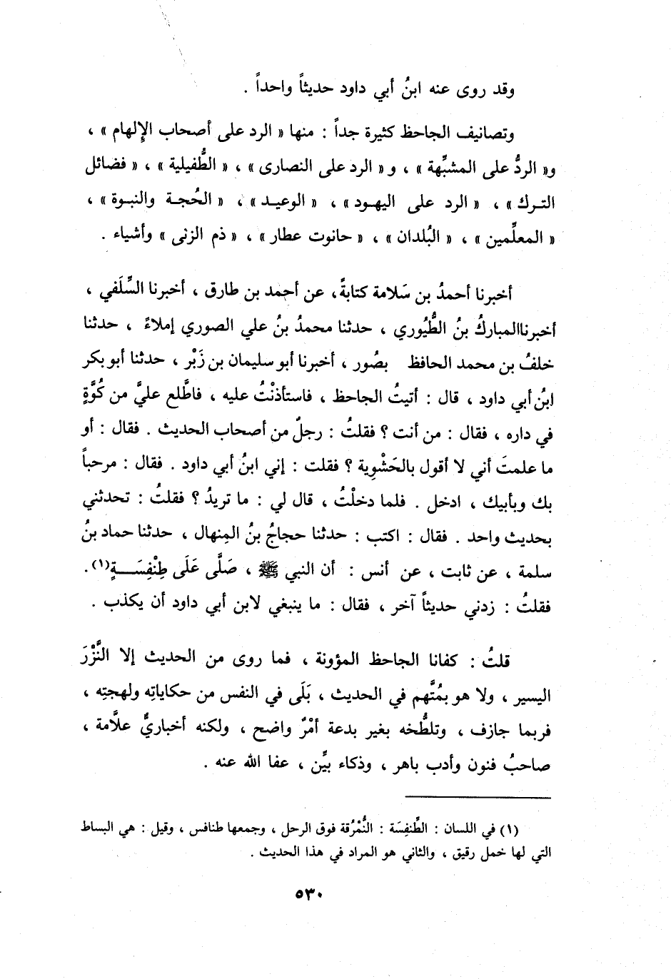 قُلْتُ: كَفَانَا الجَاحِظُ المَؤُونَةَ، فَمَا رَوَى مِنَ الحَدِيْثِ إِلاَّ النَّزْرَ اليَسِيْرَ، وَلاَ هُوَ بِمُتَّهَمٍ فِي الحَدِيْثِ، بَلَى فِي النَّفْسِ مِنْ حِكَايَاتِهِ وَلَهْجَتِهِ، فَرُبَّمَا جَازَفَ، وَتَلَطُّخُهُ بِغَيْرِ بِدْعَةٍ أَمْرٌ وَاضِحٌ، وَلَكِنَّهُ أَخْبَارِيٌّ عَلاَّمَةٌ، صَاحِبُ فُنُوْنٍ وَأَدَبٍ بَاهِرٍ، وَذَكَاءٍ بَيِّنٍ - عَفَا اللهُ عَنْهُ -.