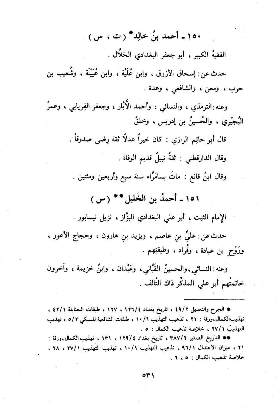 150 - أَحْمَدُ بنُ خَالِدٍ أَبُو جَعْفَرٍ الخَلاَّلُ * (ت، س)