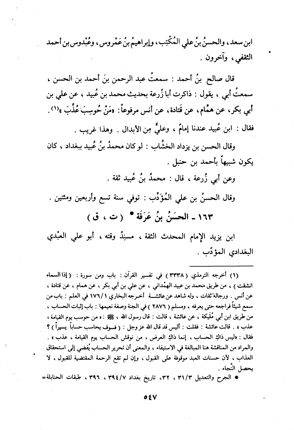 163 - الحَسَنُ بنُ عَرَفَةَ بنِ يَزِيْدَ العَبْدِيُّ * (ت، ق)