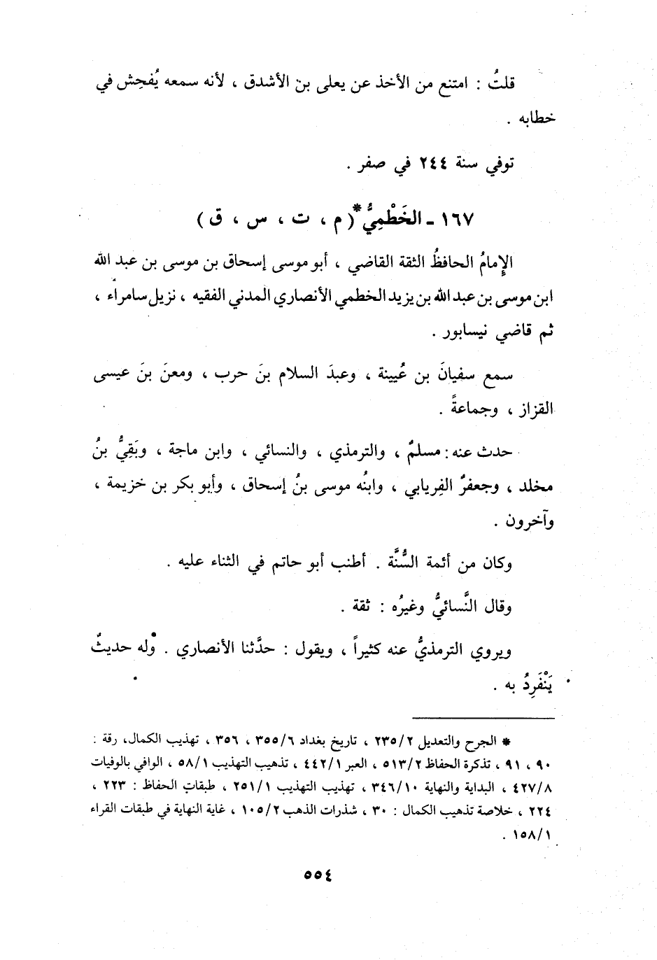 167 - الخَطْمِيُّ إِسْحَاقُ بنُ مُوْسَى بنِ عَبْدِ اللهِ * (م، ت، س، ق)