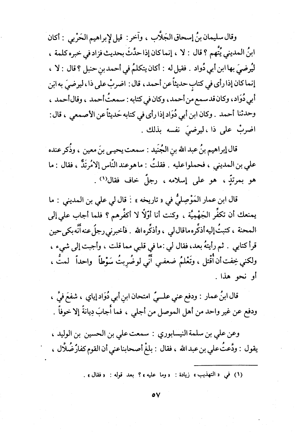 قَالَ ابْنُ عَمَّارٍ المَوْصِلِيُّ فِي (تَارِيْخِهِ) : قَالَ لِي عَلِيُّ بنُ المَدِيْنِيِّ: