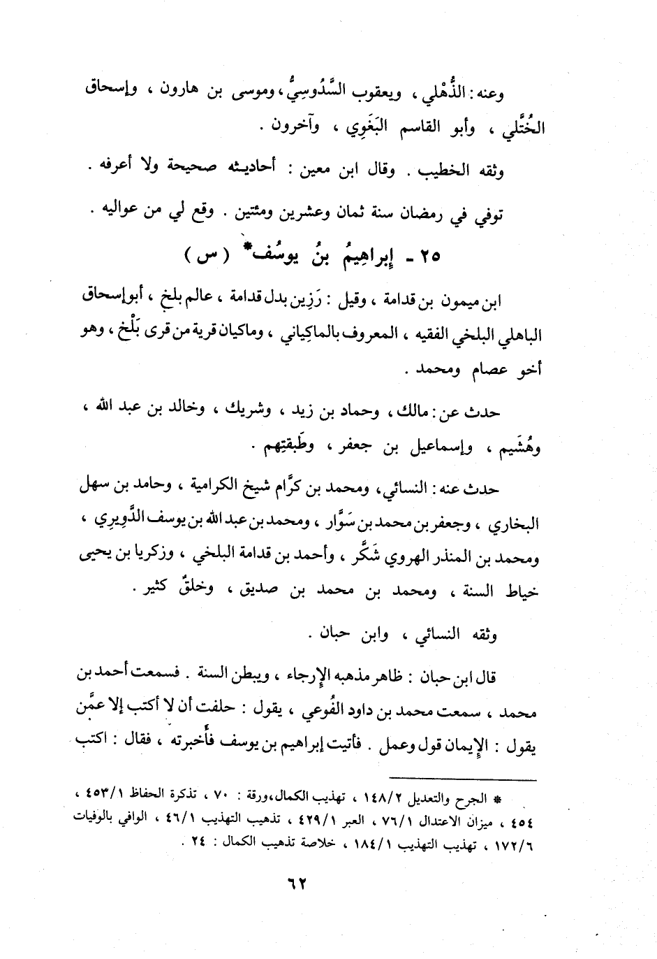 25 - إِبْرَاهِيْمُ بنُ يُوْسُفَ بنِ مَيْمُوْنِ بنِ قُدَامَةَ البَلْخِيُّ * (س)