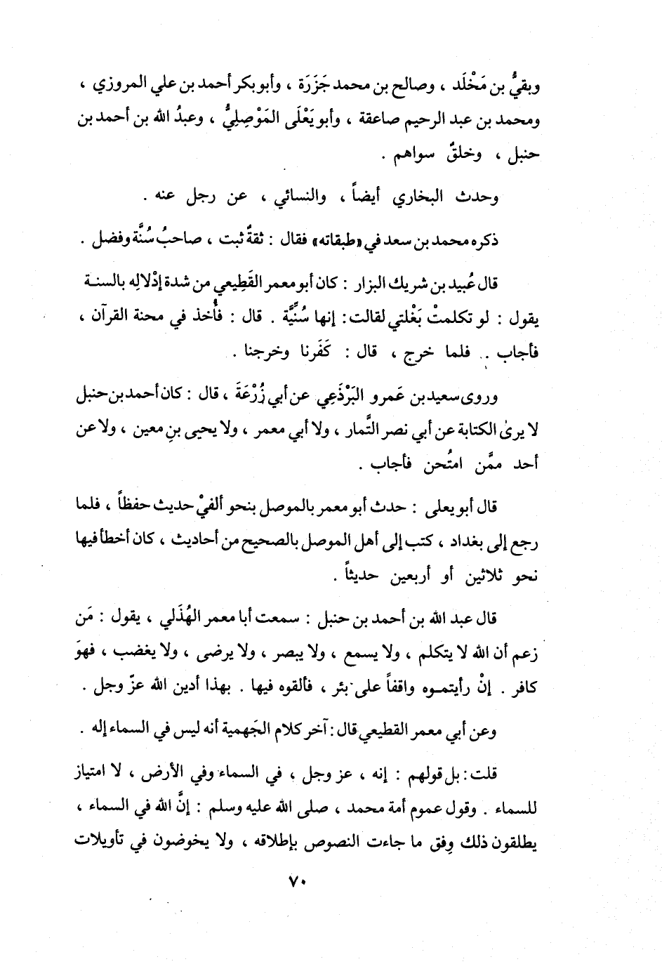 قَالَ عَبْدُ اللهِ بنُ أَحْمَدَ بنِ حَنْبَلٍ: سَمِعْتُ أَبَا مَعْمَرٍ الهُذَلِيَّ يَقُوْلُ: