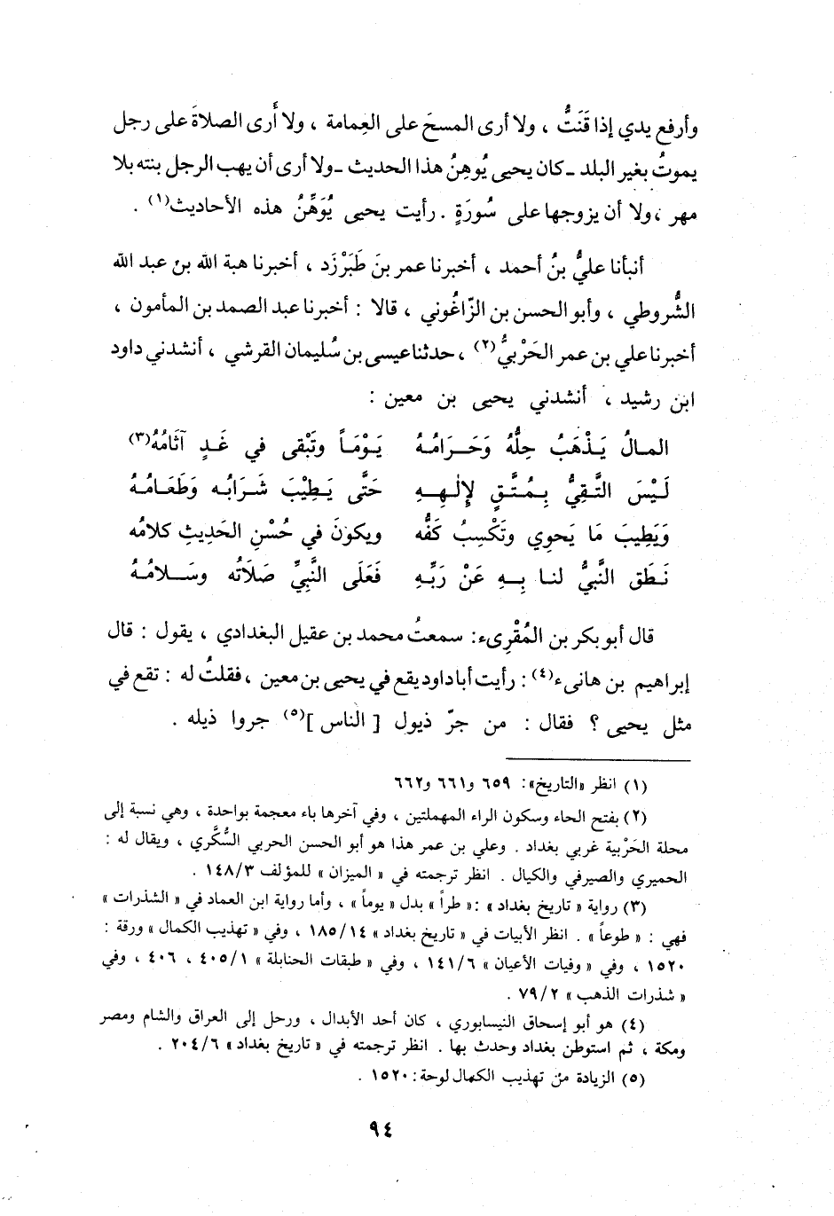أَخْبَرَنَا عَبْدُ الصَّمَدِ بنُ المَأْمُوْنِ، أَخْبَرَنَا عَلِيُّ بنُ عُمَرَ الحَرْبِيُّ (2) ، حَدَّثَنَا عِيْسَى بنُ سُلَيْمَانَ القُرَشِيُّ، أَنْشَدَنِي دَاوُدُ بنُ رَشِيْدٍ، أَنْشَدَنِي يَحْيَى بنُ مَعِيْنٍ: