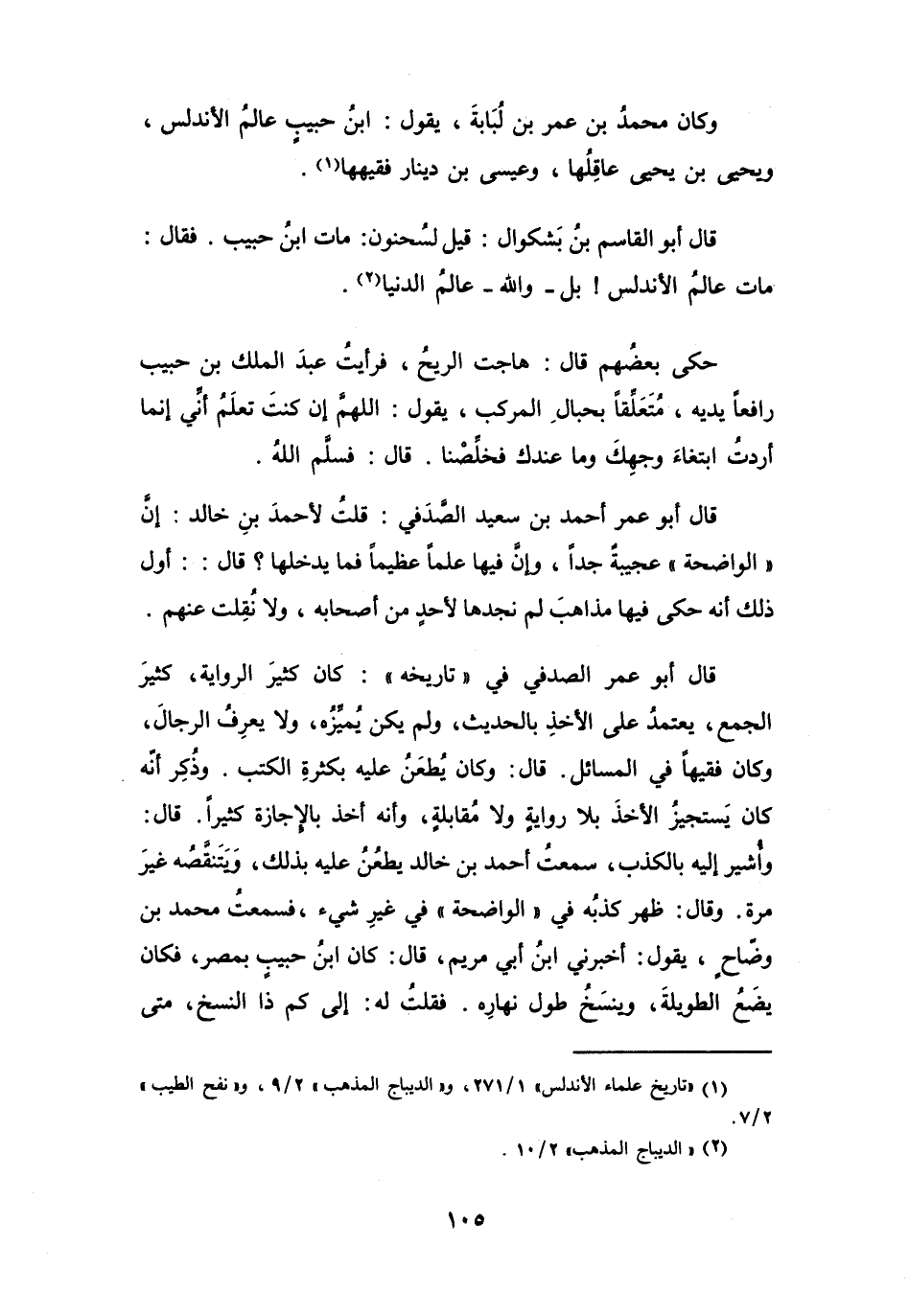 (1) " تاريخ علماء الأندلس " 1 / 271، و" الديباج المذهب " 2 / 9، و" نفخ الطيب " 2 / 7.