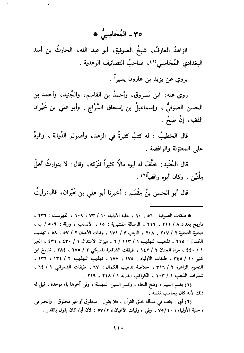 35 - المُحَاسِبِيُّ أَبُو عَبْدِ اللهِ الحَارِثُ بنُ أَسَدٍ البَغْدَادِيُّ *