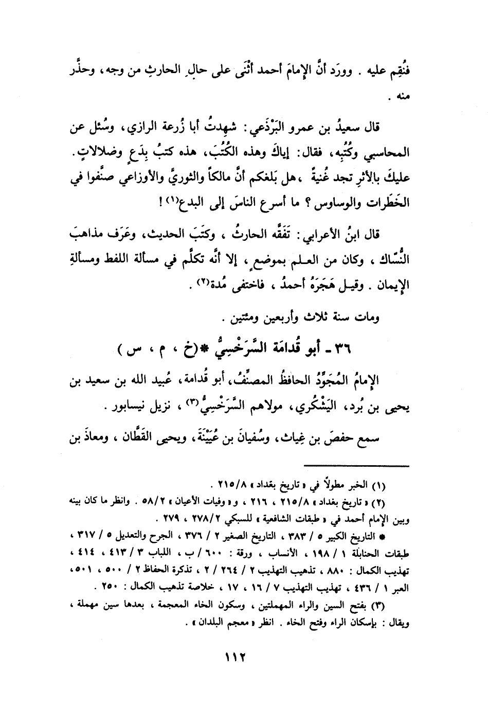 (2) " تاريخ بغداد " 8 / 215، 216، و" وفيات الأعيان " 2 / 58.
