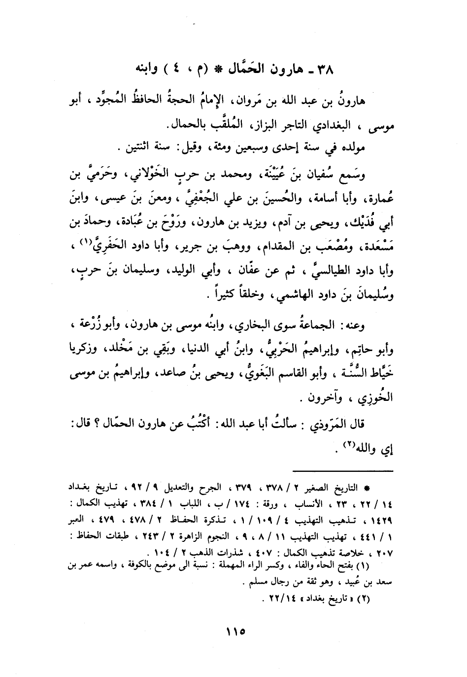 38 - هَارُوْنُ بنُ عَبْدِ اللهِ بنِ مَرْوَانَ الحَمَّالُ (م، 4) وَابْنُهُ