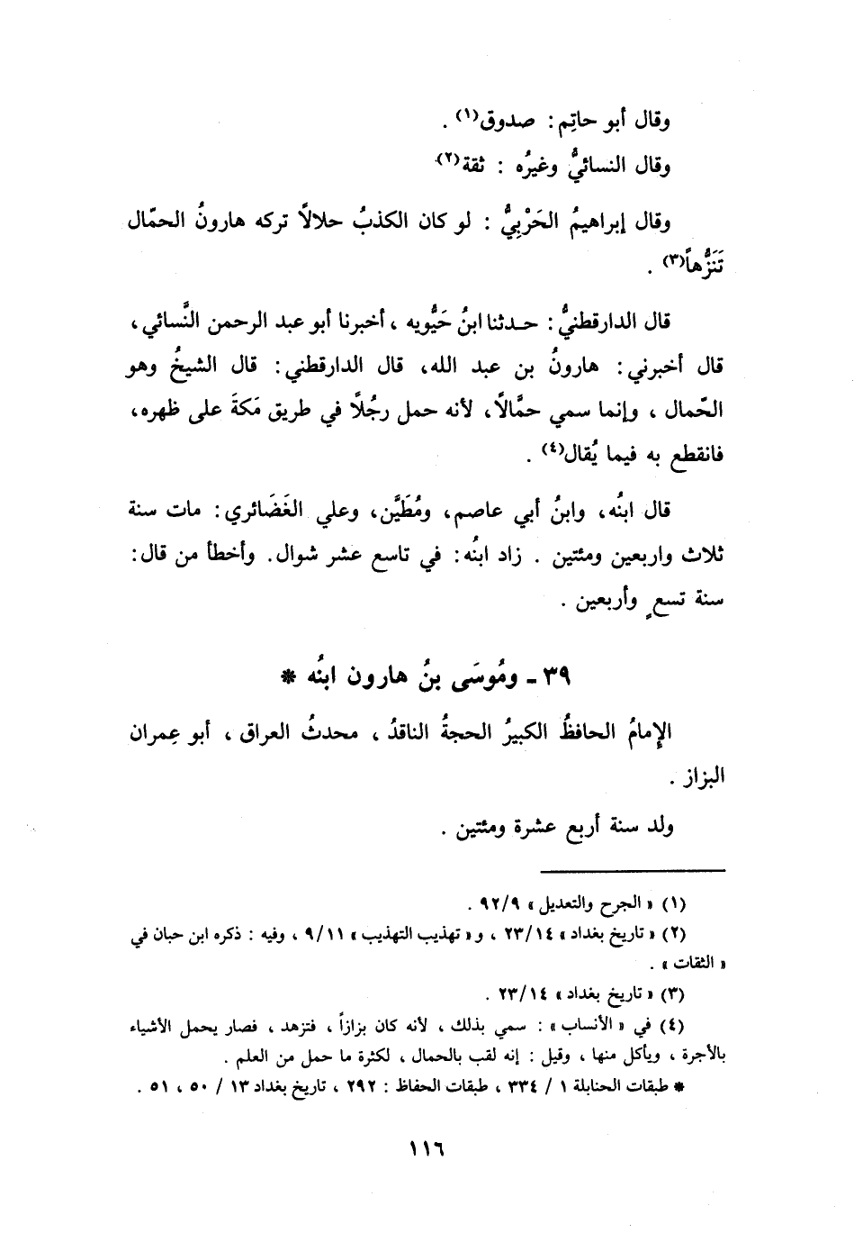39 - مُوْسَى بنُ هَارُوْنَ أَبُو عِمْرَانَ البَزَّازُ ابْنُه*