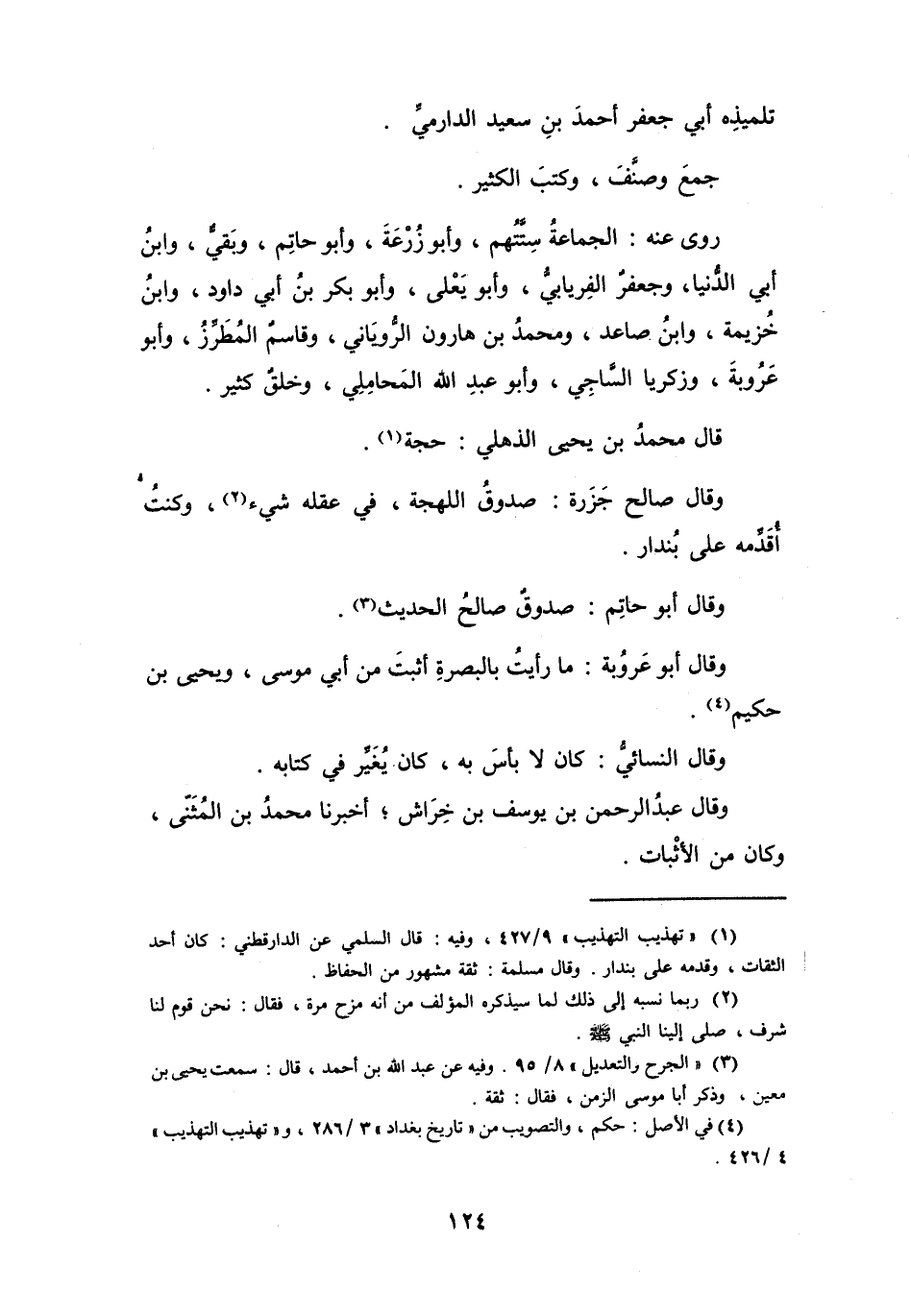 (1) " تهذيب التهذيب " 9 / 427، وفيه: قال السلمي عن الدارقطني: كان أحد الثقات، وقدمه على بندار.
