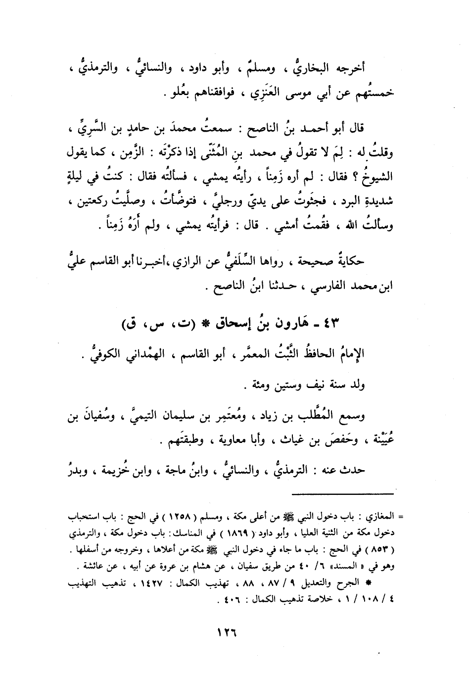 43 - هَارُوْنُ بنُ إِسْحَاقَ الهَمْدَانِيُّ * (ت، س، ق)