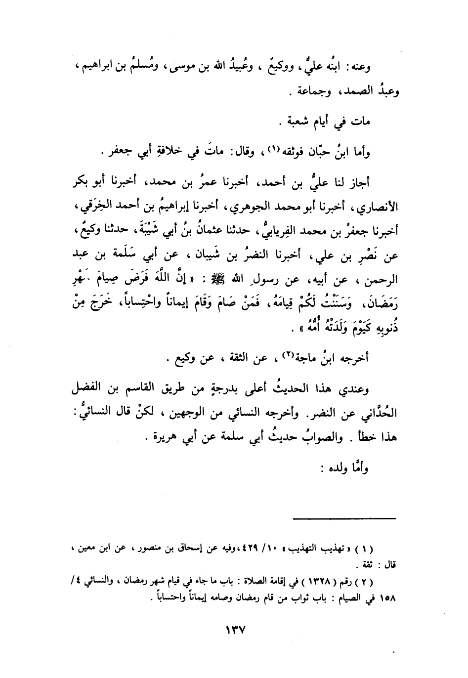 أَخْرَجَهُ: ابْنُ مَاجَهْ (2) ، عَنِ الثِّقَةِ، عَنْ وَكِيْعٍ.