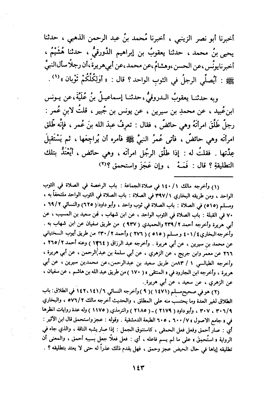 (1) وأخرجه مالك 1 / 140 في صلاة الجماعة: باب الرخصة في الصلاة في الثوب الواحد، ومن طريقه البخاري 1 / 397 في الصلاة: باب الصلاة في الثوب الواحد ملتحفا به، ومسلم (515) في الصلاة: باب الصلاة في ثوب واحد، وأبو داود (625) والنسائي 2 / 69، 70 في القبلة: باب الصلاة في الثوب الواحد، عن ابن شهاب، عن سعيد بن المسيب، عن أبي هريرة وأخرجه أحمد 2 / 239 والحميدي (937) من طريق سفيان عن ابن شهاب به.